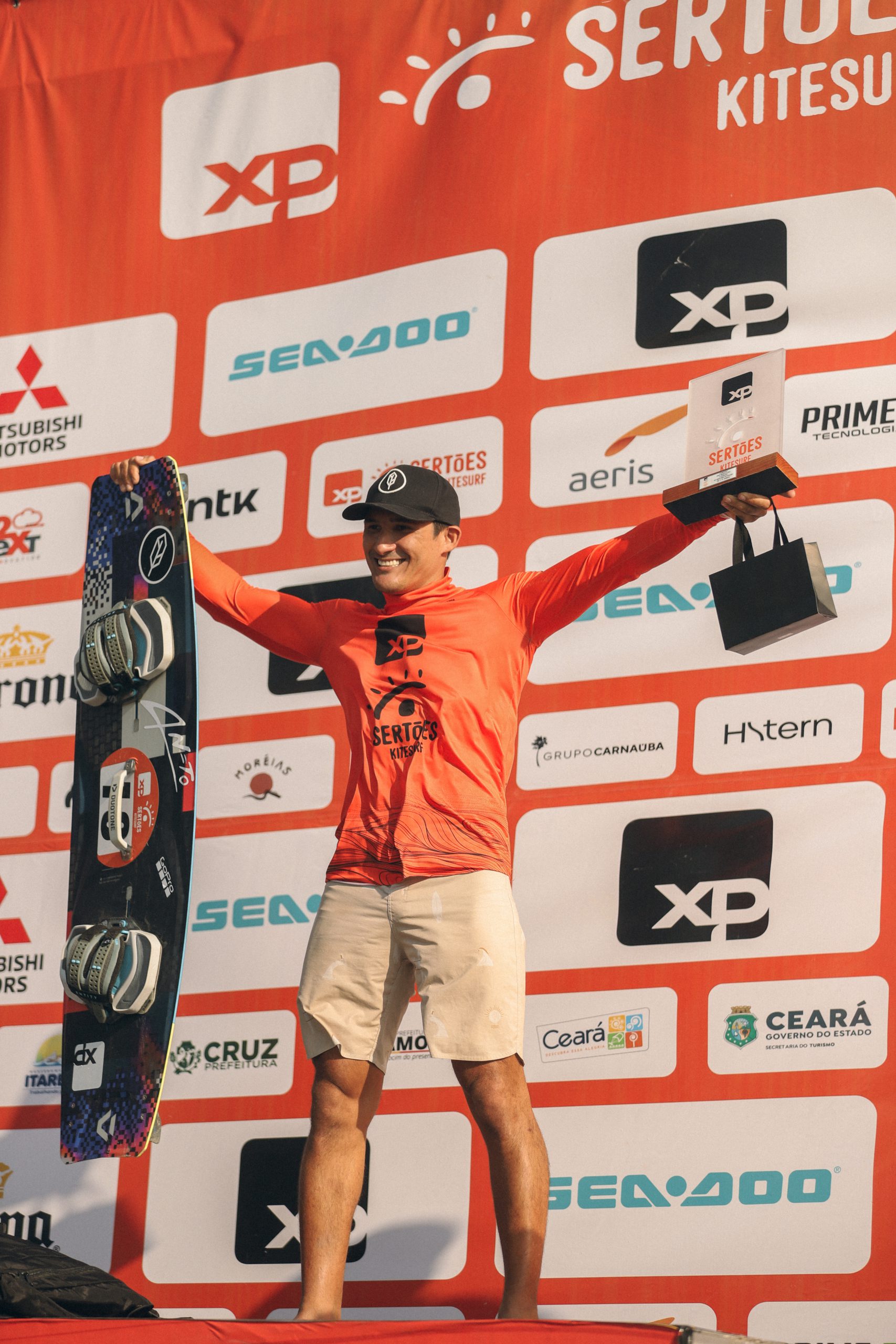 O atleta Pena, da Praia do Cumbuco, na Terra do Sol, repetiu a performance e sente o gosto da vitória pela segunda vez, no XP Sertões Kitesurf