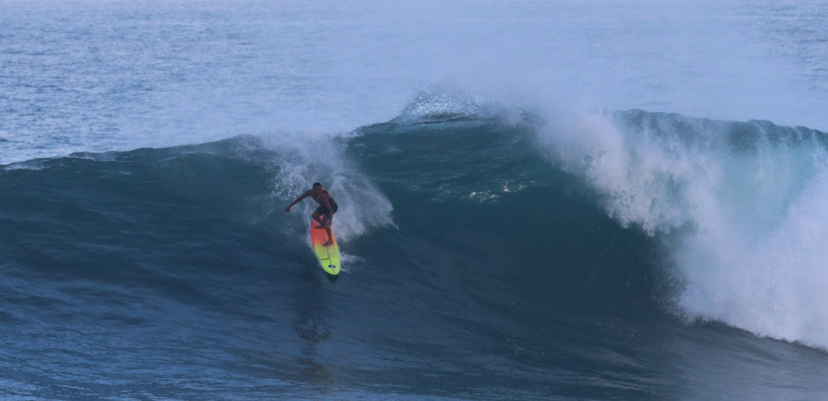 Cauã vem se destacando durante o free surf em todos os picos, com uma previsão de um big sweel que chegou a ser acionado o alerta amarelo para realização do Eddie Aikau, principal evento de ondas grandes do mundo, pairou no ar aquela expectativa.