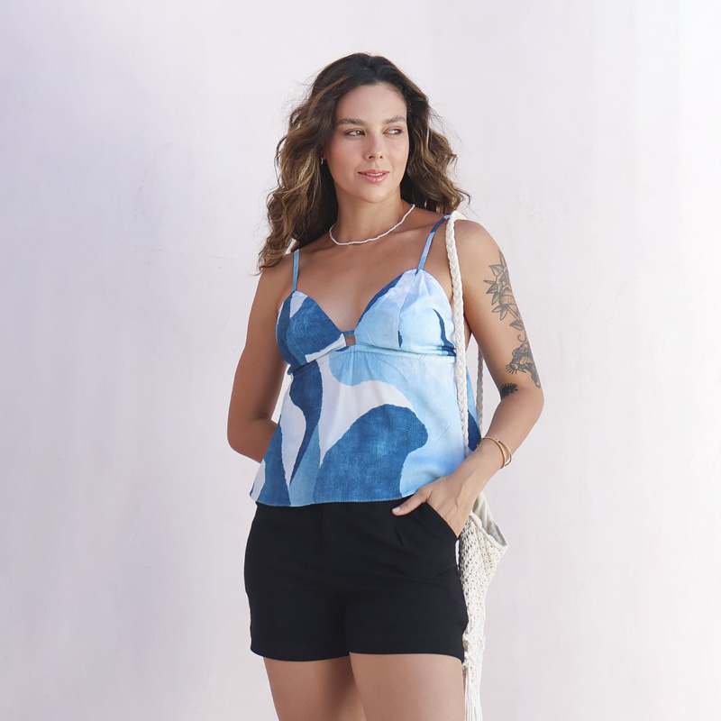 – O modelo mede 1,65m de altura e usa tamanho P na foto.