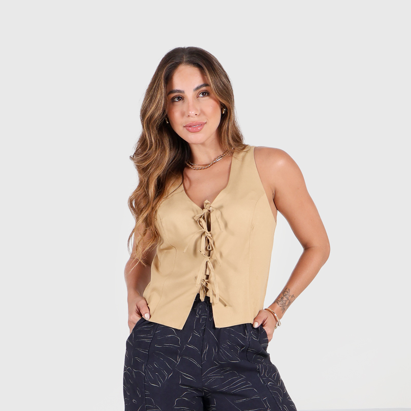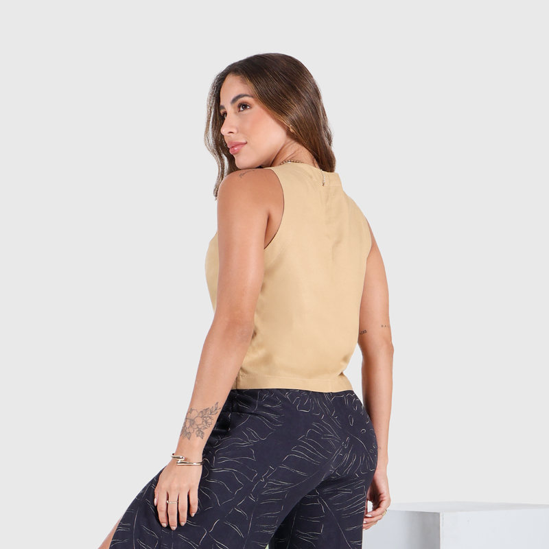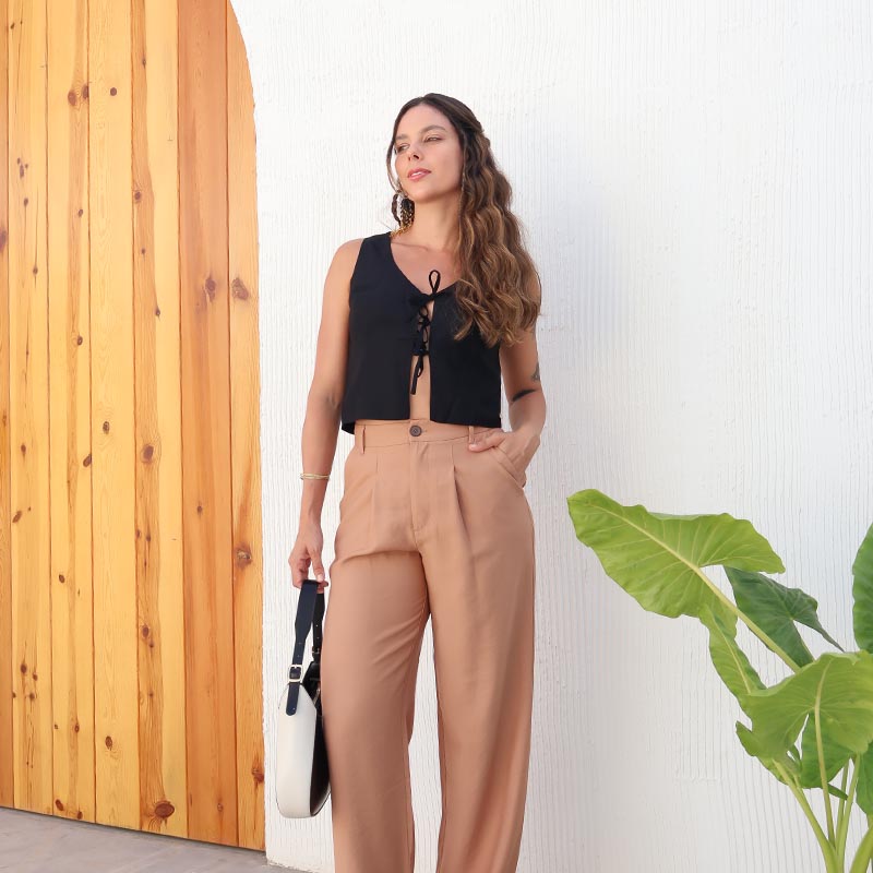 – O modelo mede 1,65m de altura e usa tamanho P na foto.