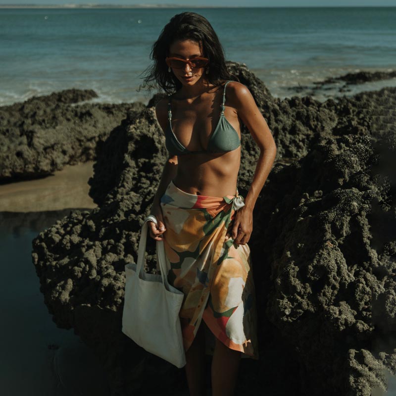 – O modelo mede 1,65m de altura e usa tamanho P na foto.