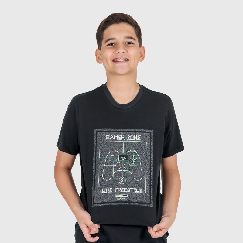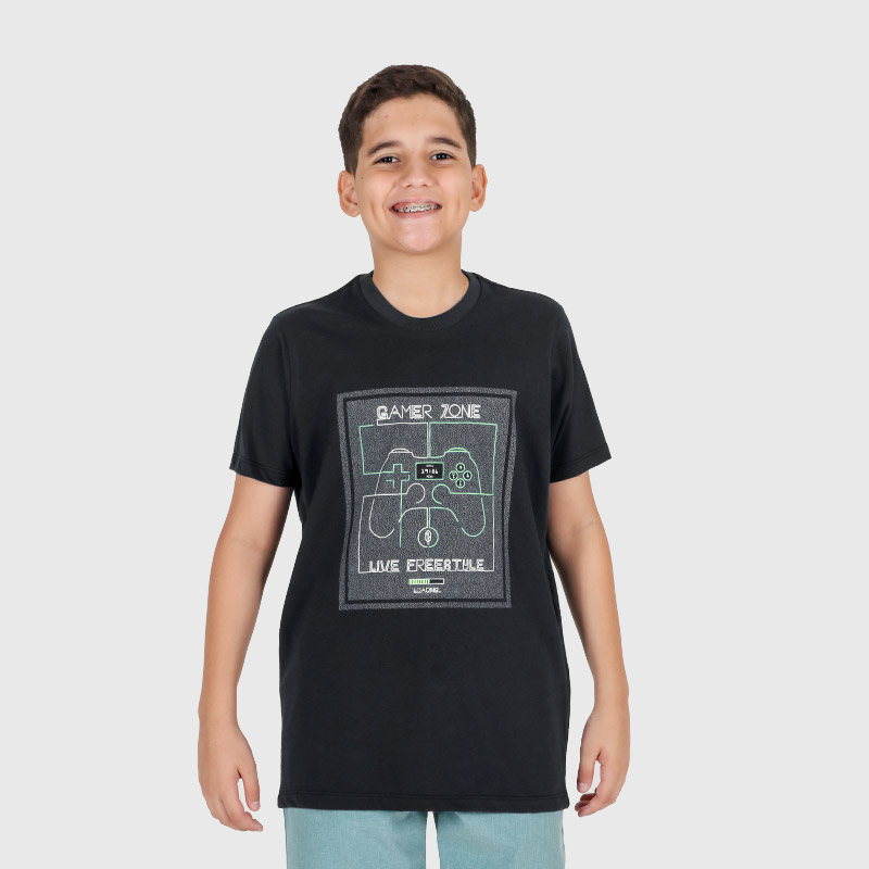– O modelo mede 1,48 cm de altura e usa tamanho 12 Anos na foto