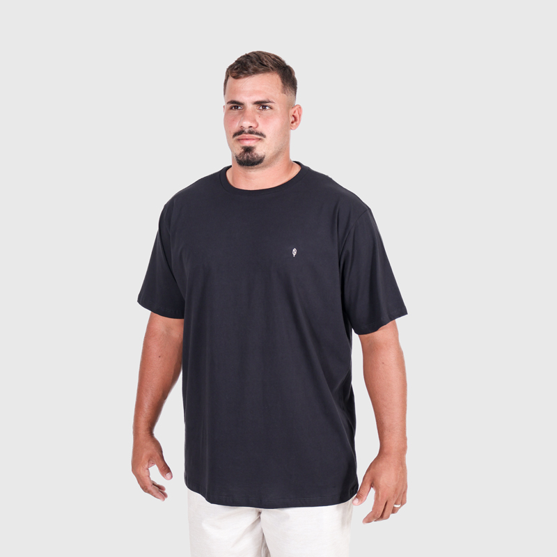– O modelo mede 1,80 cm de altura e usa tamanho XG na foto.