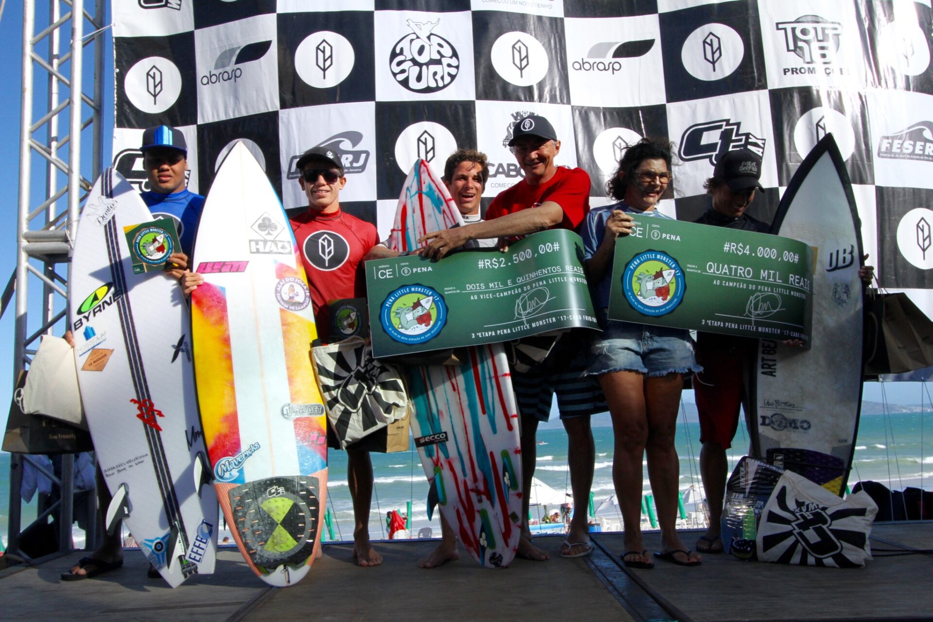 A etapa final do Pena Little Monster 2017 foi realizada com apresentação da CT Wax, patrocínio da Pena Surf Wear e Prefeitura Municipal de Cabo Frio, apoio da Federação de Surf do Estado do Rio de Janeiro (FESERJ) e Cabo Frio Surf Clube. O evento foi promovido pela Top 16 Promoções e a categoria Pro Junior organizada pela Associação Brasileira de Surf Profissional (ABRASP). Mais informações, resultados e rankings no www.pena.com.br