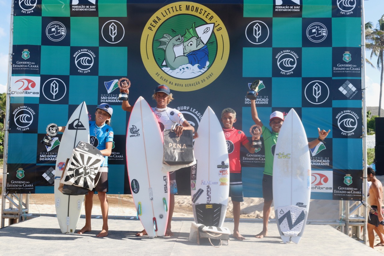 A catarinense Tainá Hinckel fechou com chave de ouro a sua participação no Pena Little Monster, vencendo a última decisão da categoria Pro Junior Sub-18 do domingo nas ondas da Praia da Taíba, em São Gonçalo do Amarante, no Ceará. Tainá agora dispara na liderança do ranking sul-americano, com duas vitórias nas três primeiras etapas da WSL South America. A final foi contra Julia Duarte e na masculina o potiguar Mateus Sena bateu o novo líder, Daniel Adisaka. Com o título, o natalense subiu da 12.a para a terceira posição no ranking, entrando na lista dos quatro que se classificam para o Mundial Pro Junior da World Surf League.