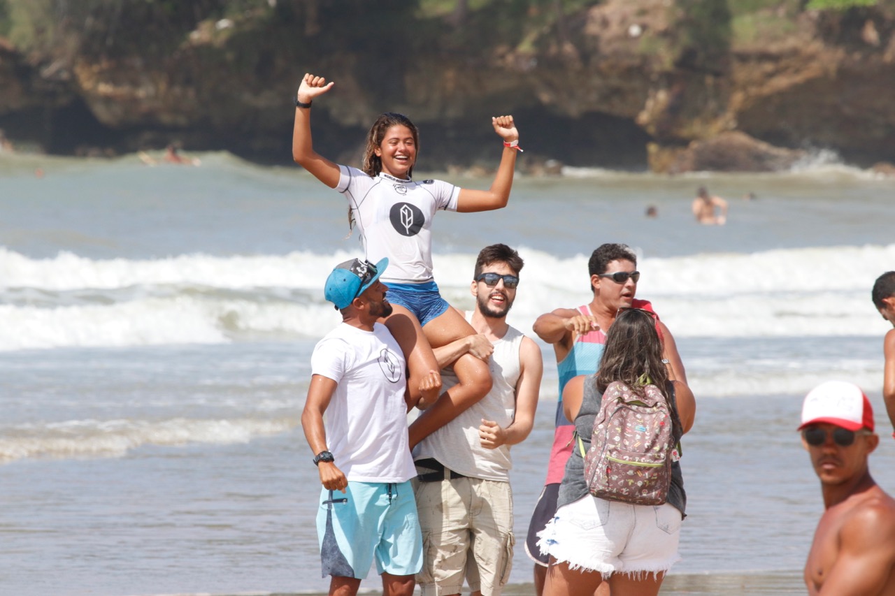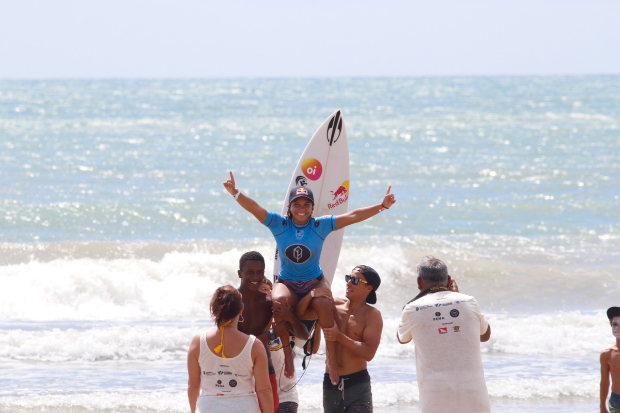Tainá já destacou nas ondas da Praia do Taíba desde o sábado, fazendo as maiores notas e somatórias entre as meninas. Seu primeiro duelo no domingo era um confronto direto pela ponta do ranking sul-americano com a nova vice-líder, Daniella Rosas. A catarinense começou bem com nota 7,00 e dominou a peruana, até vencer por 13,85 a 9,60 pontos. Na decisão contra Julia Duarte, repetiu o seu ataque manobrando forte para abrir grandes leques de água nas batidas e rasgadas. Foi assim desde o início e a vitória foi confirmada com as notas 8,25 e 7,35 em duas ondas seguidas, que computou no placar de 15,60 a 10,15 pontos.