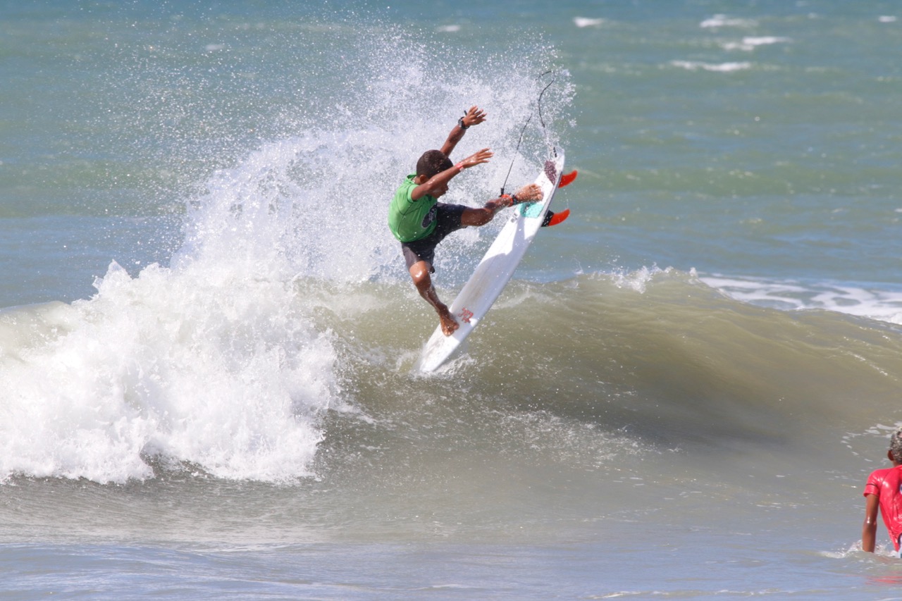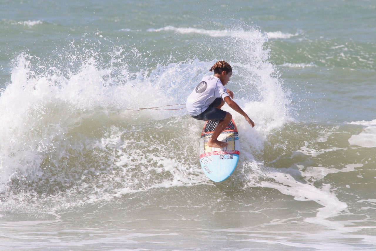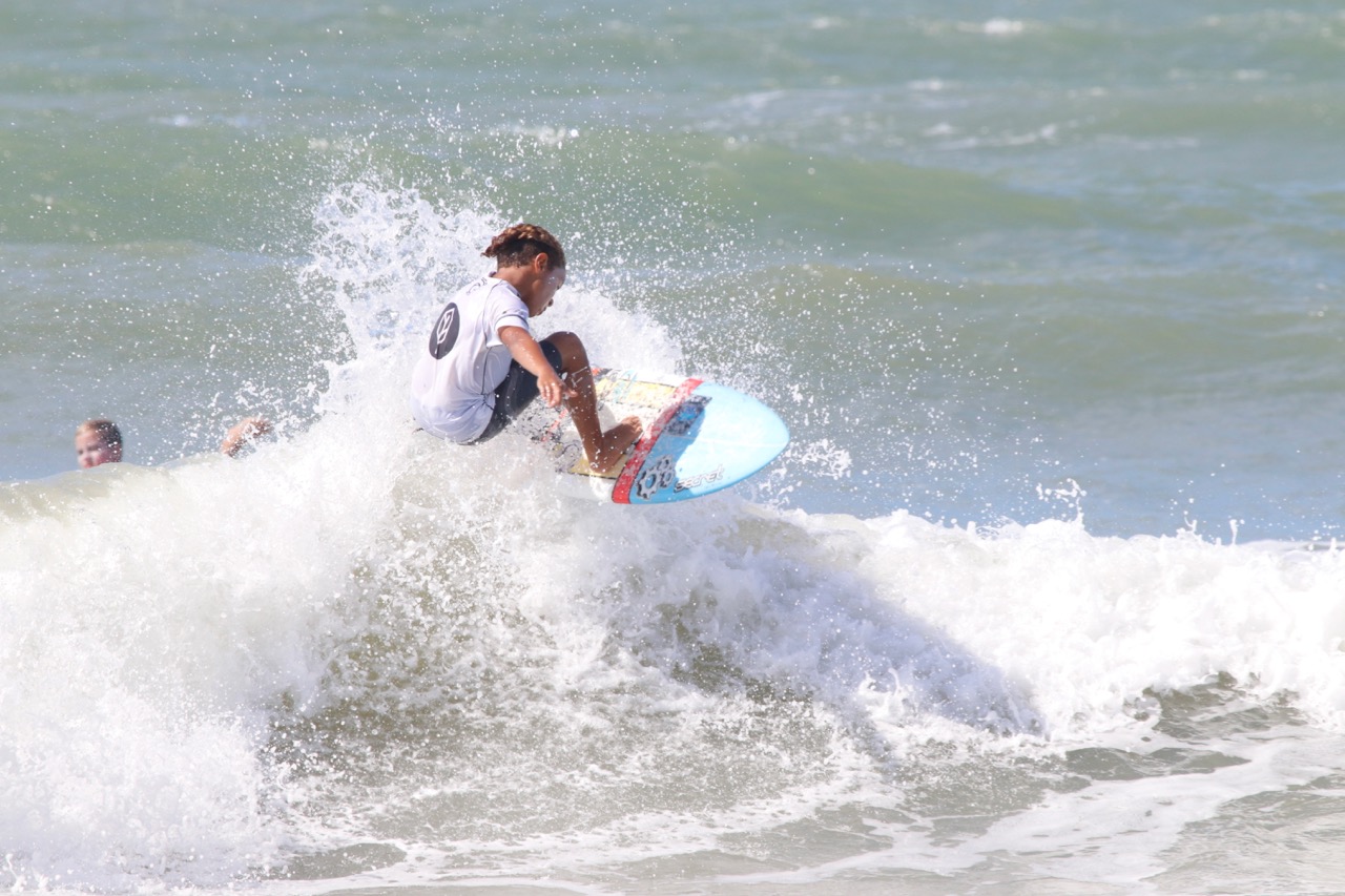 O paulista Daniel Adisaka tinha passado com mais facilidades pelo catarinense Uriel Sposaro, conseguindo uma nota 8,00 para vencer por 14,75 a 10,60. Na decisão do título, o potiguar começou bem de novo, acertando as manobras que arriscou em sua segunda onda para receber nota 7,75. A primeira boa do paulista valeu 5,75 e depois o máximo que conseguiu foi um 6,25. Já Mateus Sena destruiu outra onda e os juízes deram 8,75, para selar seu primeiro título em etapas do Sul-americano Pro Junior, por 16,50 a 12,00 pontos.