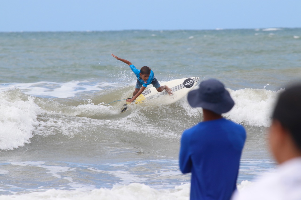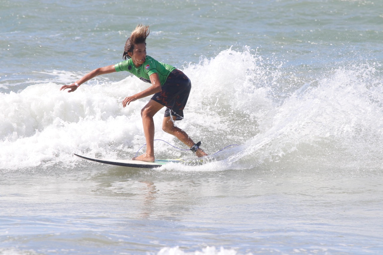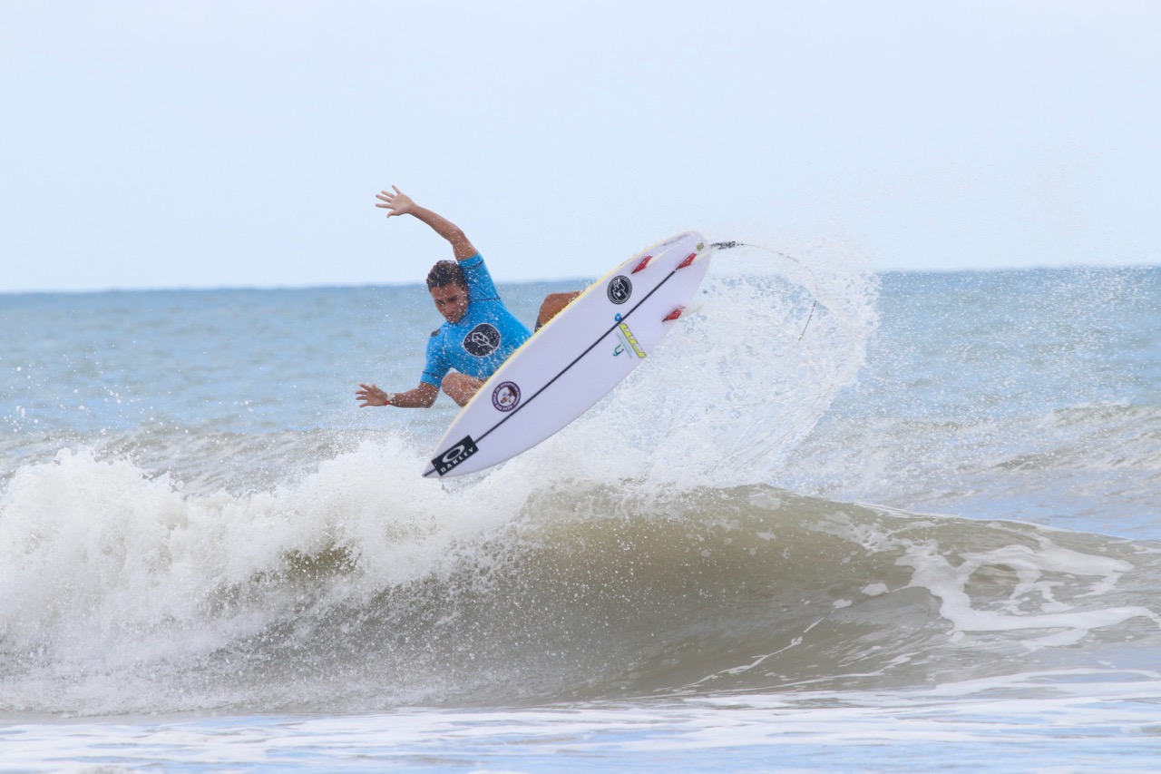 O paulista Daniel Adisaka tinha passado com mais facilidades pelo catarinense Uriel Sposaro, conseguindo uma nota 8,00 para vencer por 14,75 a 10,60. Na decisão do título, o potiguar começou bem de novo, acertando as manobras que arriscou em sua segunda onda para receber nota 7,75. A primeira boa do paulista valeu 5,75 e depois o máximo que conseguiu foi um 6,25. Já Mateus Sena destruiu outra onda e os juízes deram 8,75, para selar seu primeiro título em etapas do Sul-americano Pro Junior, por 16,50 a 12,00 pontos.
